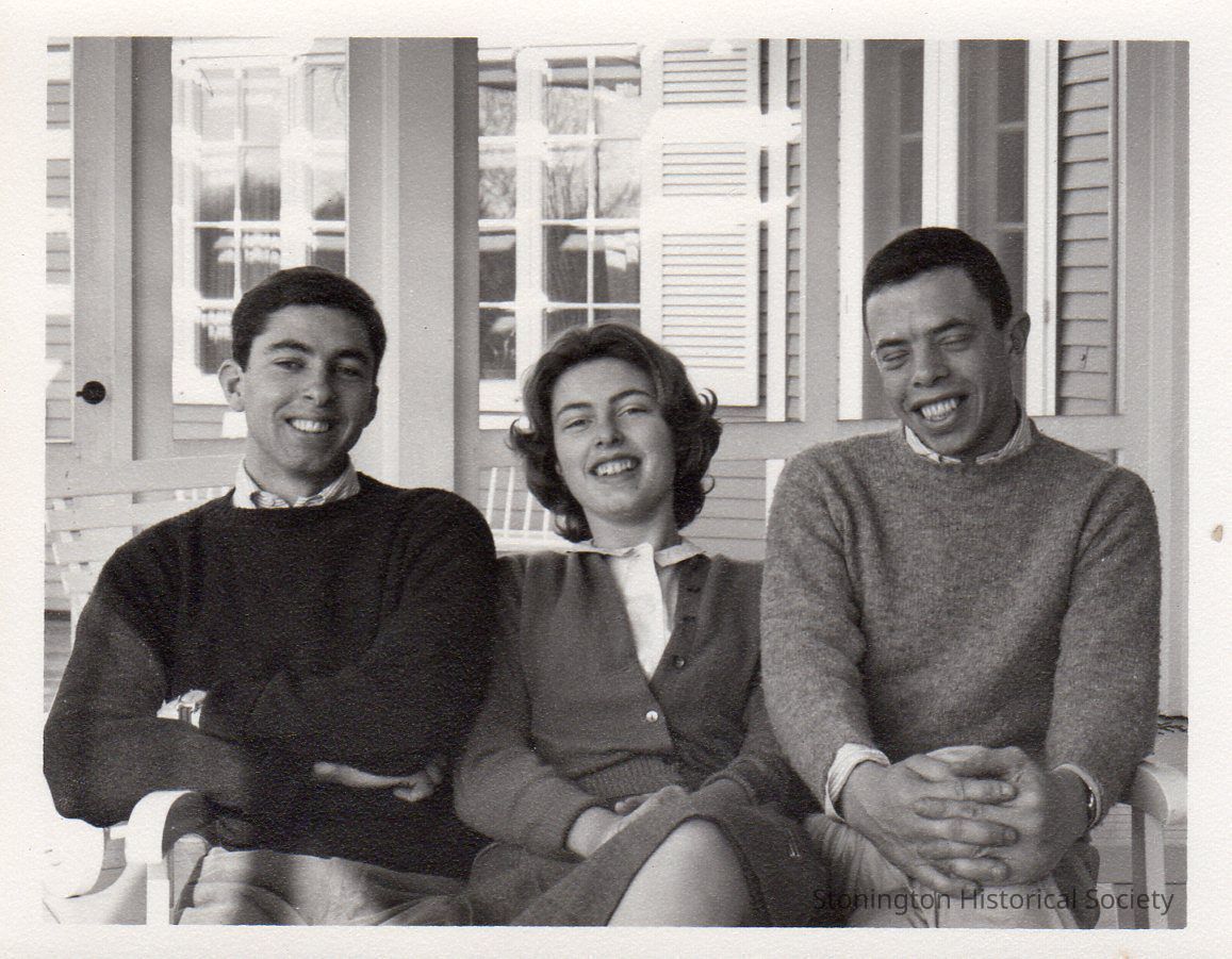 Black and white photograph of Judy Gildersleeve with Andy (Alfred H. Jr.) and Richard, c. 1958-1959