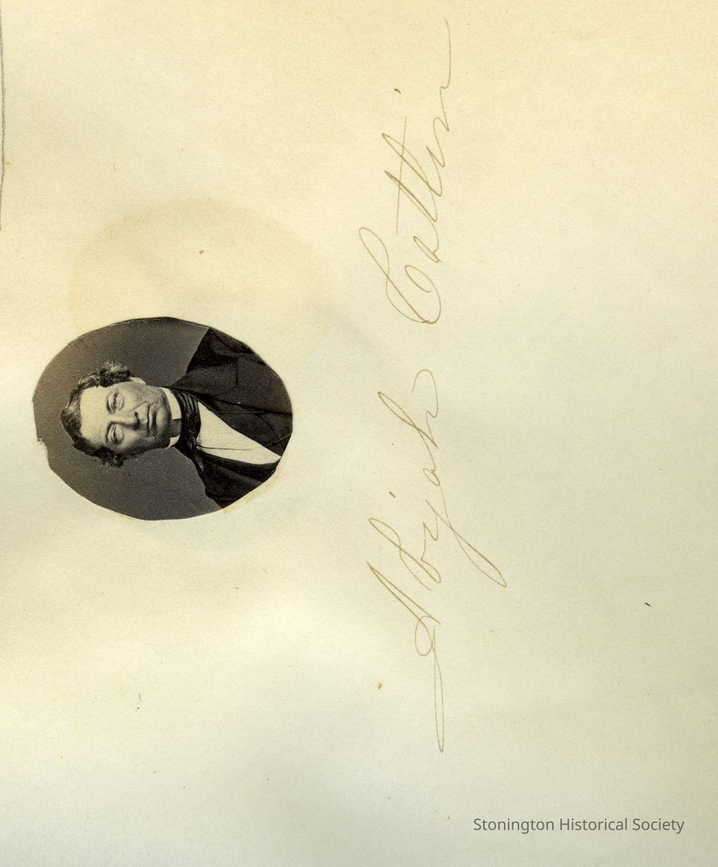 Small oval portrait of Abijah Catlin in "Photographs and Autographs" book