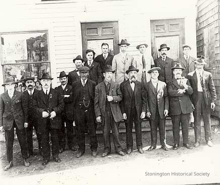 Group of men outside store. Cornelius Crandall's?, Stonington CTEntry/Object ID
