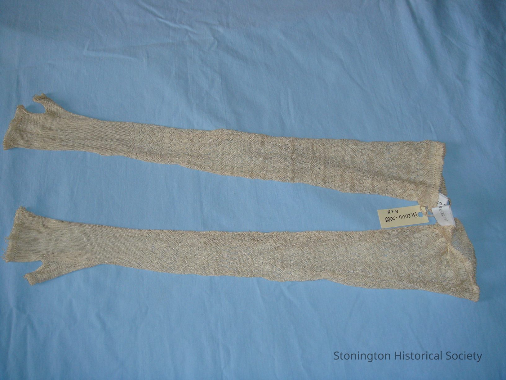 Ladies gloves/ fingerless mitts knitted cream silk 20 inches long