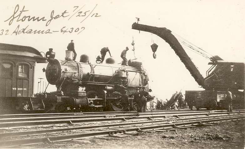 Engine 307 with crane working at wreck, Stonington Junction 25 July 1912
