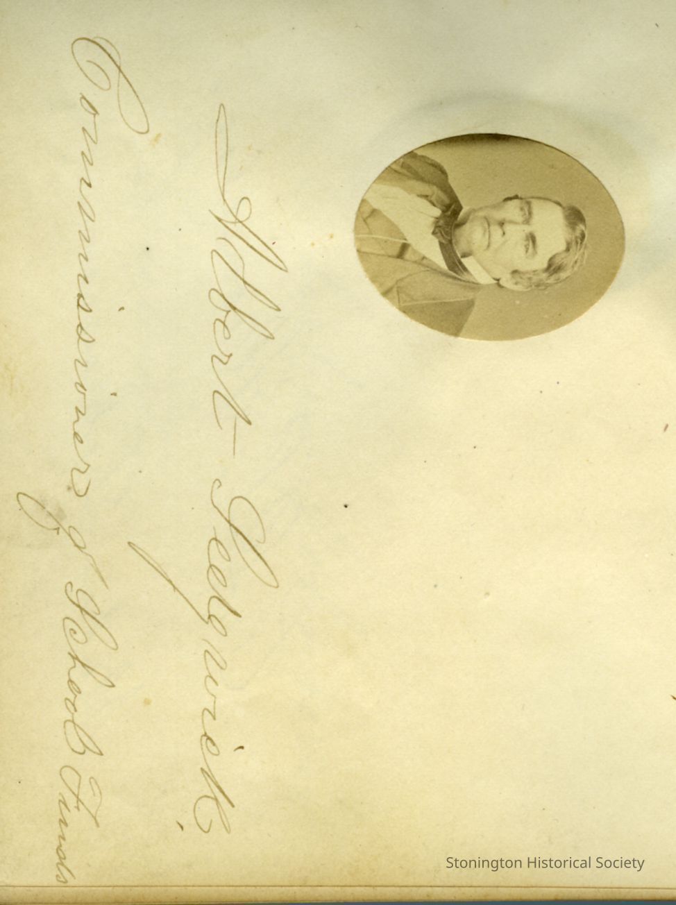 Small oval portrait of Albert Sedgewick, Commissioner of School Funds, in "Photographs and Autographs" book
