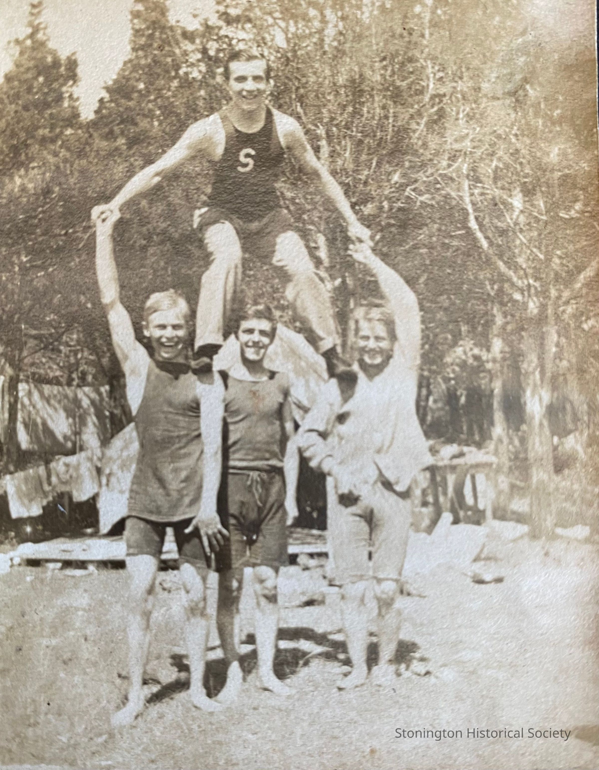 Photograph album, black paper pages, snapshots and news clippings related to "Camp Goodenough", a summer camping trip held annually at alternate locations including Ledward's (Elihu) Island, Masons Island, Wamphasset Point and Oxecosset, 1906-1932. Most photographs unidentified, but associated campers include August O. Muller, Dean Fairbrother, Charles H. Cushman, Joseph Cushman, William J. Robinson, J. Murray Henry, James E. Pollard, George E. Stanton, William D. Black, Leslier T. Gager, William A. Armstrong, Dr. Lester Gager