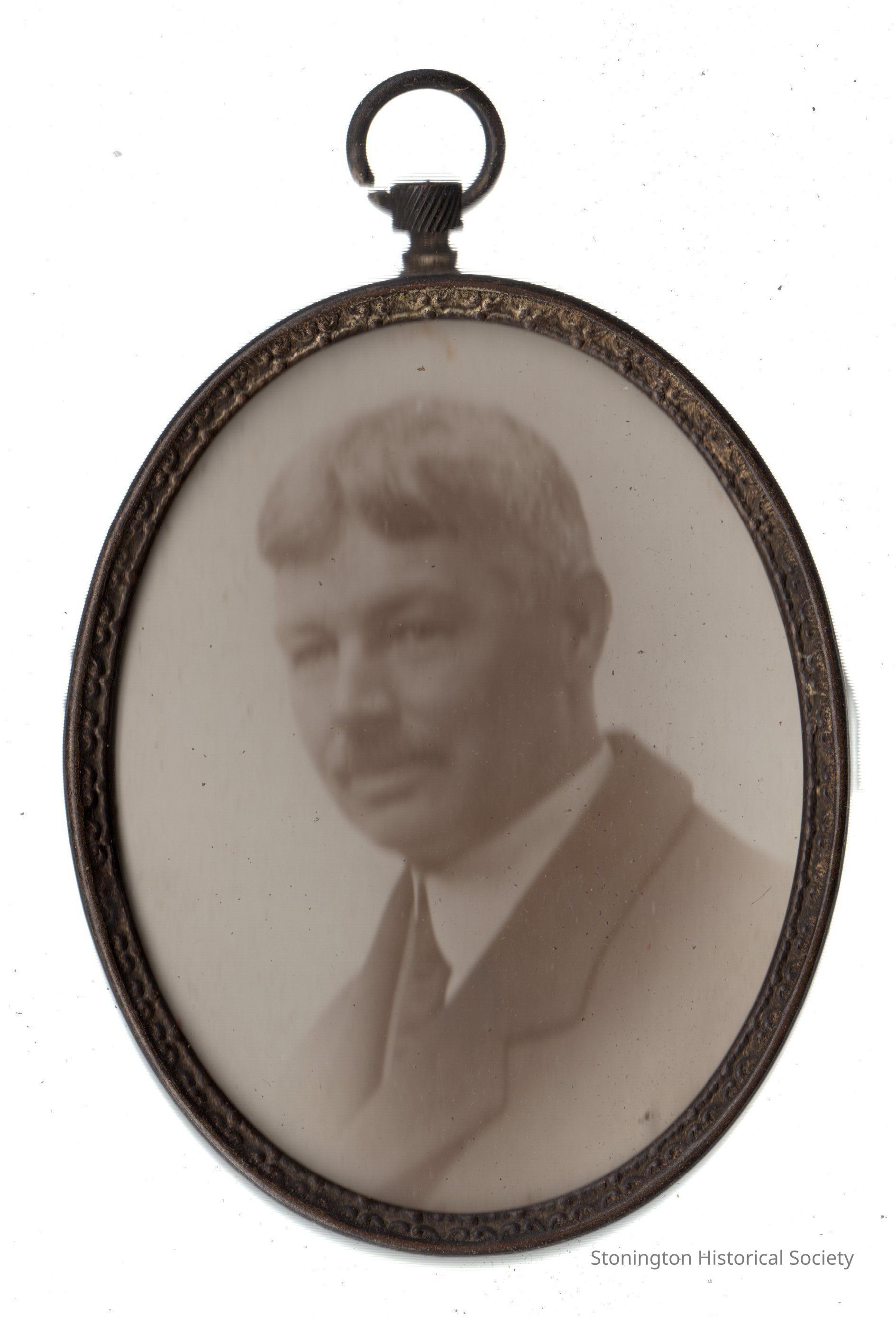 black and white photograph portrait of Alexander Palmer Loper, under glass in oval metal frame