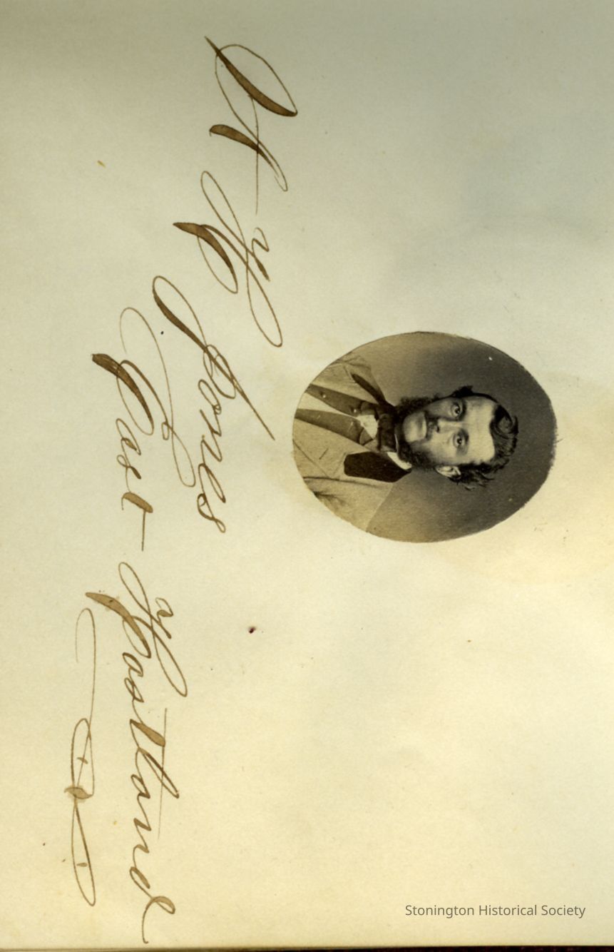 Small oval portrait of A[lmerian] H. Jones in "Photographs and Autographs" book