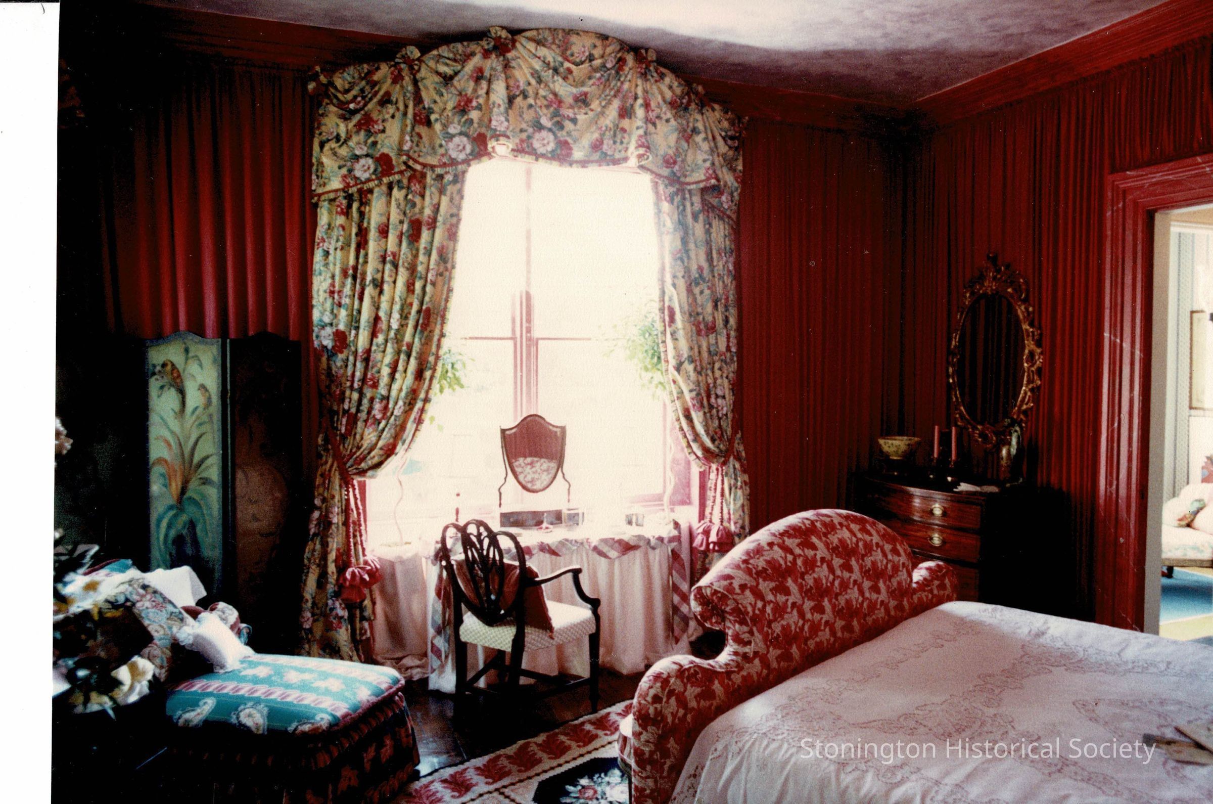 View of “Amelia’s Secrets”, as it was decorated for the Designer’s Show House in 1989. This room was originally the bedroom of Elizabeth “Libby” Palmer, daughter of Alexander S. Palmer, when the home was completed in 1852. The room was reimagined in 1989 by Deborah Adams of Madison, CT.Collection