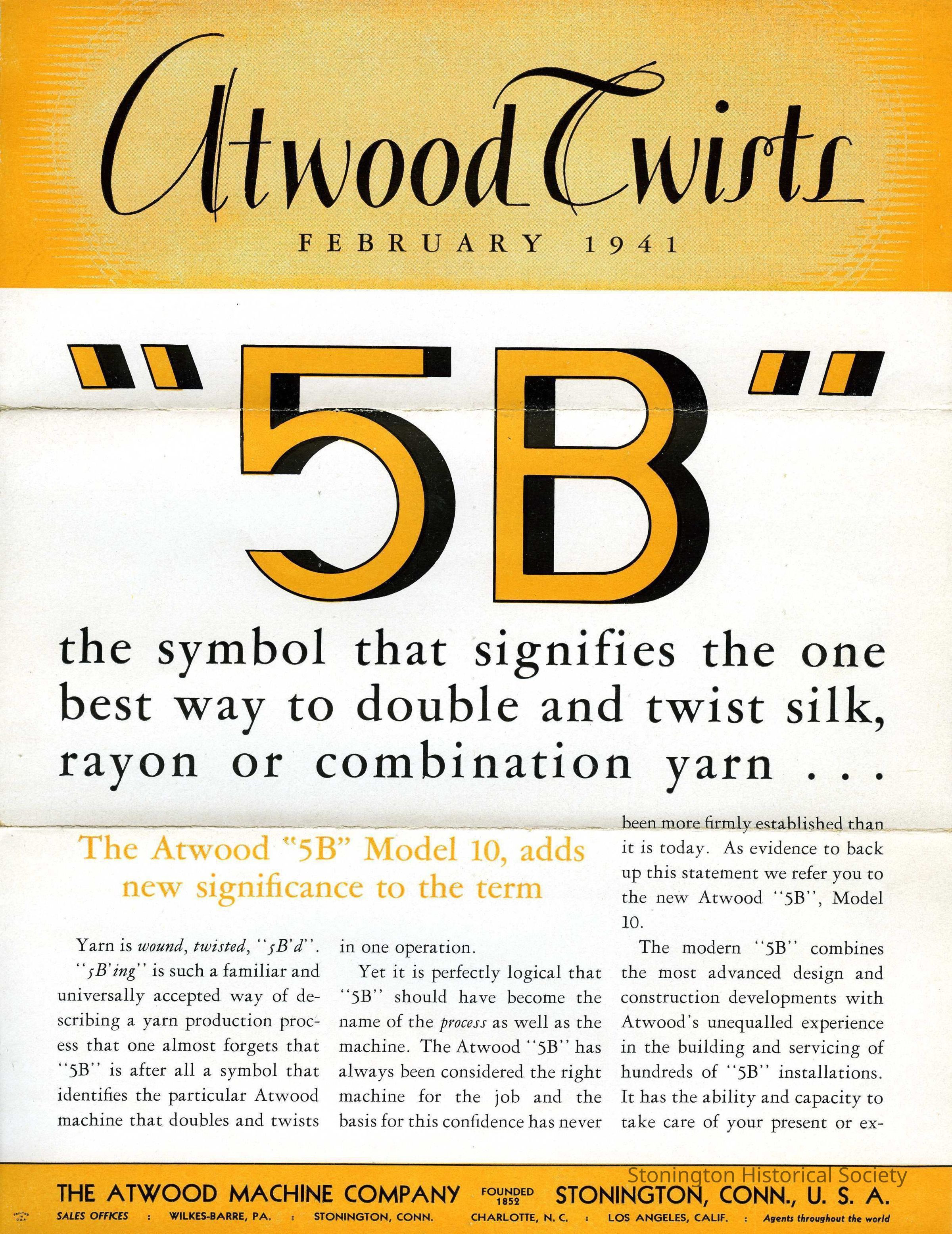 The February 1941 issue of the monthly newsletter put out by the Atwood Machine Company. This issue is focused on the new model of the Atwood 5B.Collection