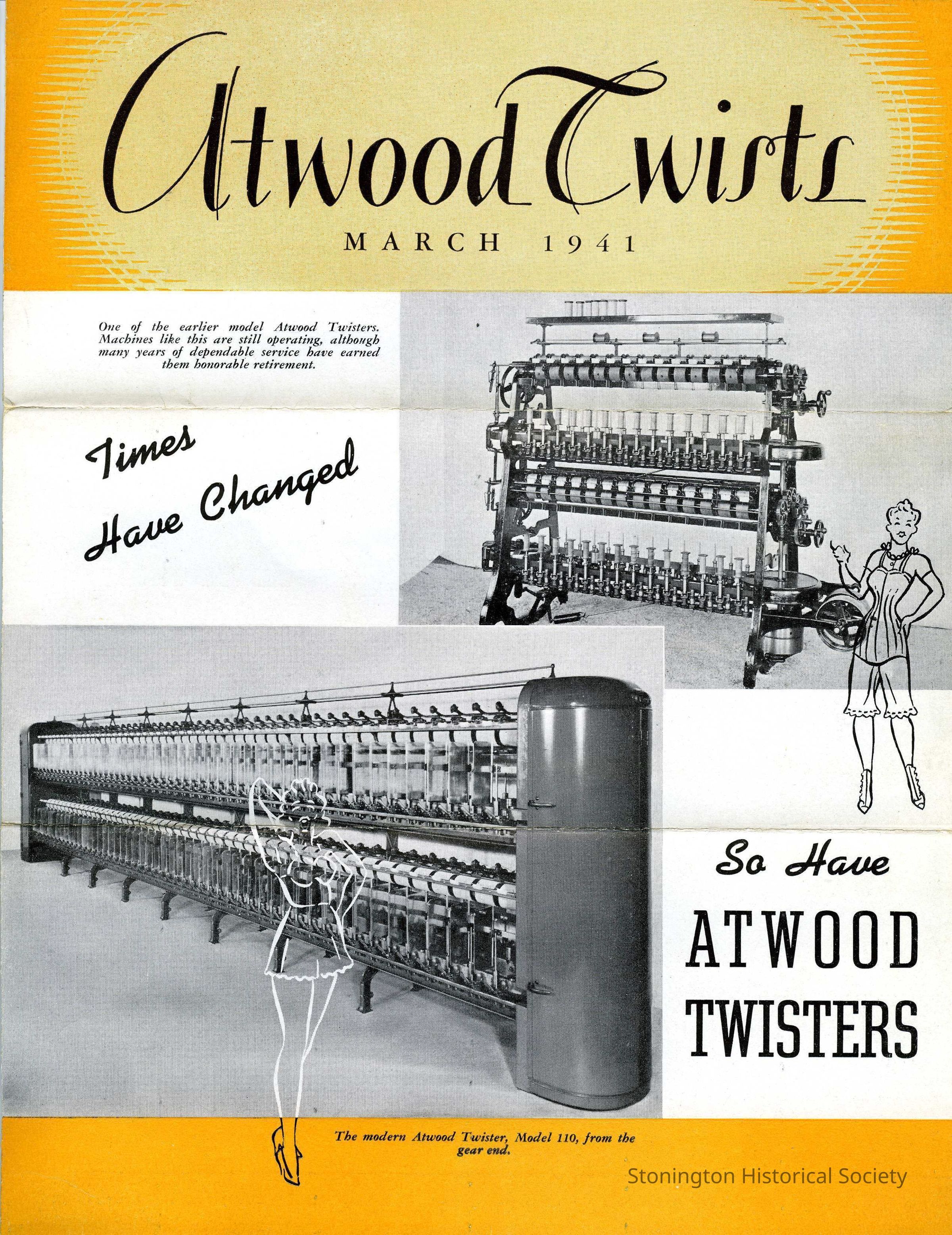 The March 1941 edition of the monthly newsletter published by the Atwood Machine Company. This edition focuses on the Atwood Twister, with black and white photographs of the machinery and close-ups of its parts with explanations.Collection
