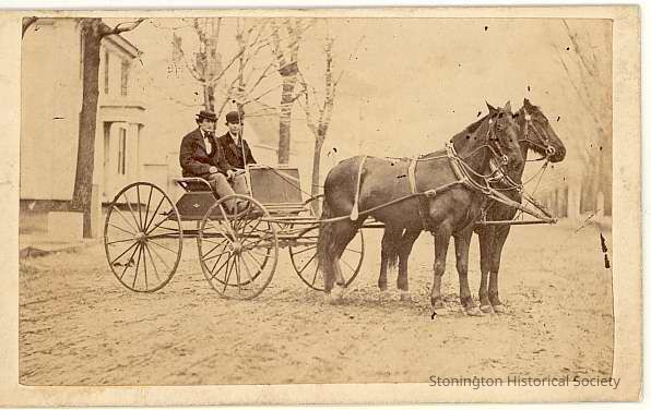 2 young men in a buggy with pair of bay horses. Caption by J. S. Anderson Jr: