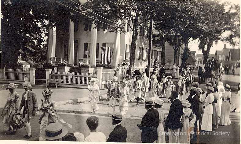 Parade for Battle of Stonington Celebration, 1914 looking south at Cannon Square on Main Street.