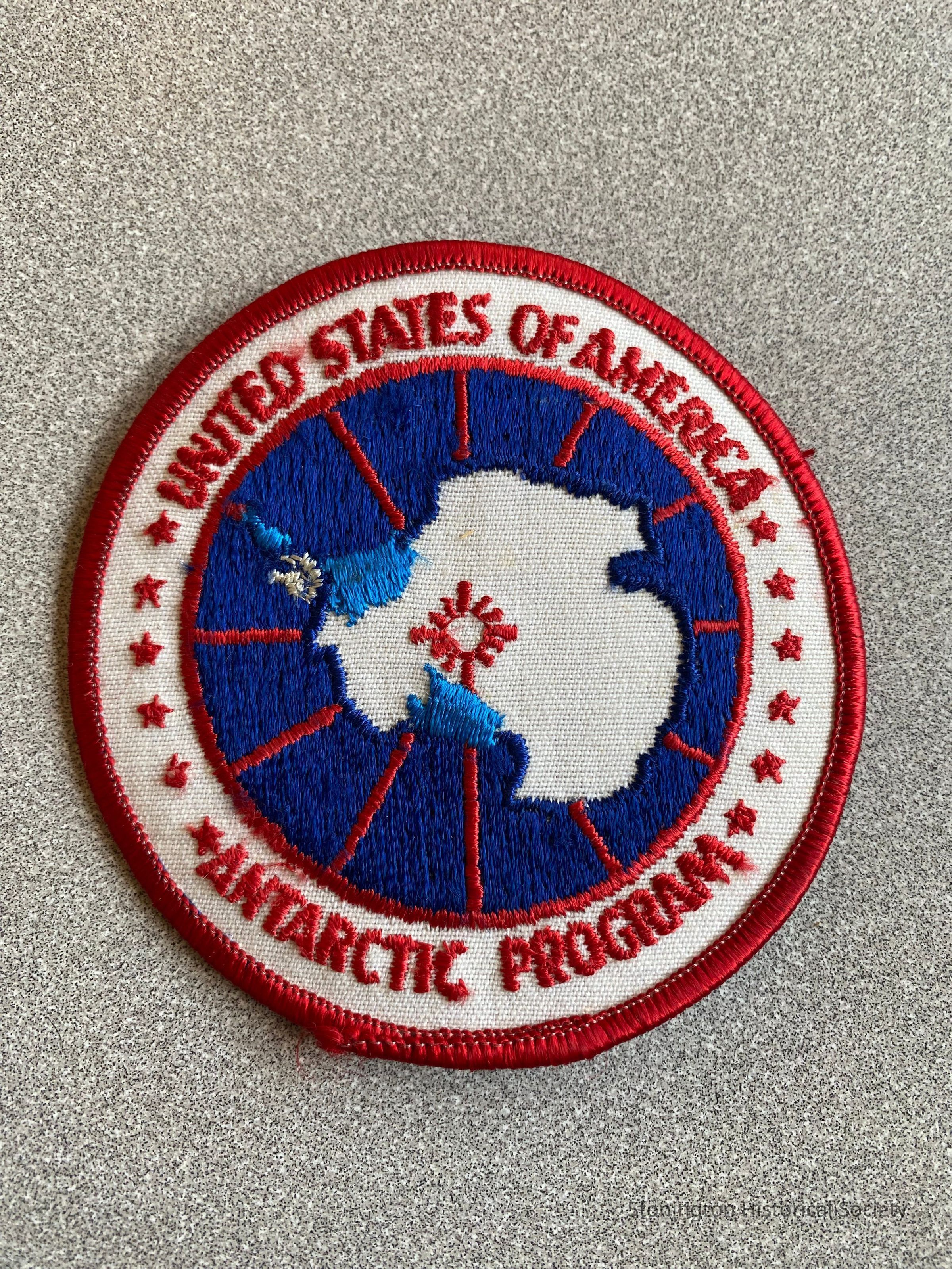 A round red, white and blue iron-on patch for the United States of America Antarctic Program. The USAP was established in 1959 after the International Geophysical Year. It is managed by the National Science Foundation.Collection