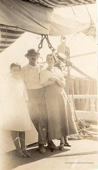 Small photo of Capt. R. D. Tillotson with Dorothea Hewitt and Vera Tillotson on board