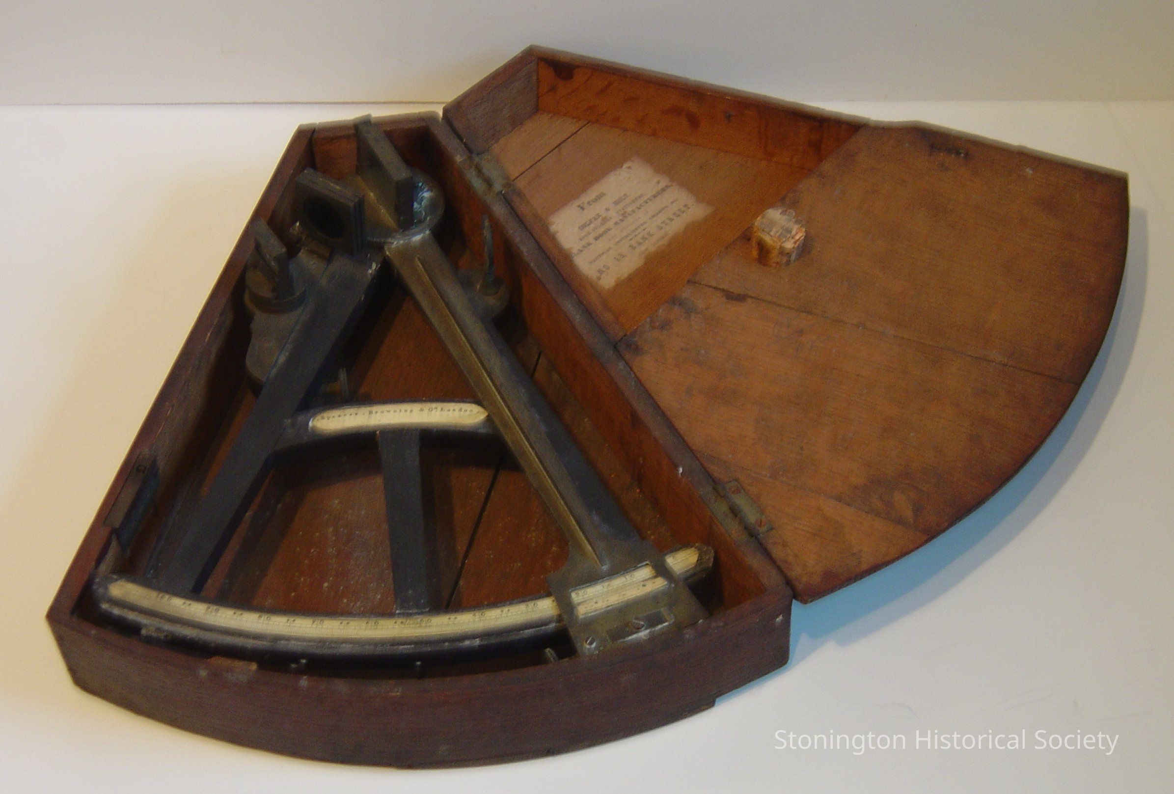 octant with bone inlay, Spencer Browning & Co. London, in case with label.
