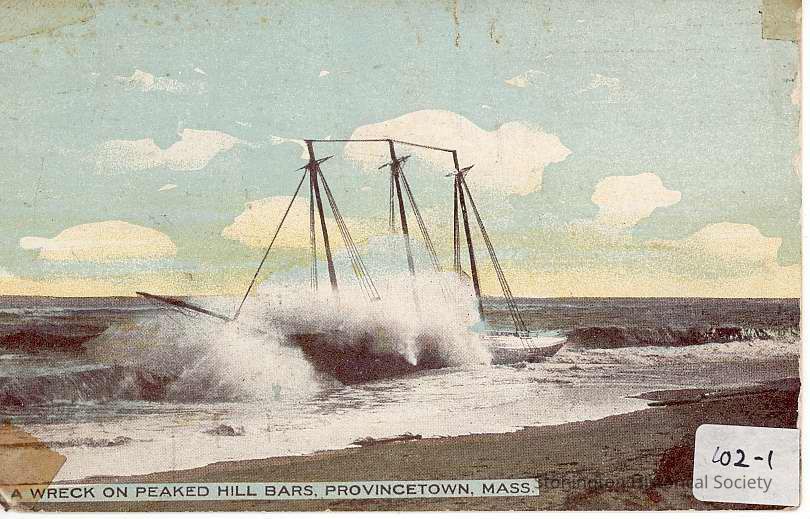 Postcard showing a wreck on Peaked Hill Bars, Provincetown Mass.