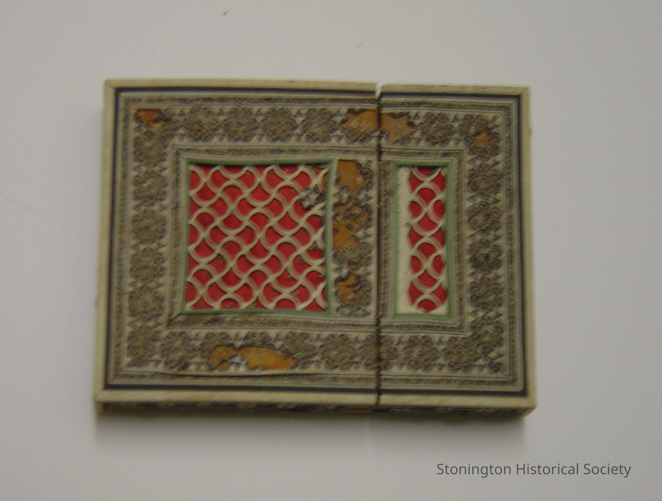 card case from China-ivory with mosaic inlayed design, intricate patterns