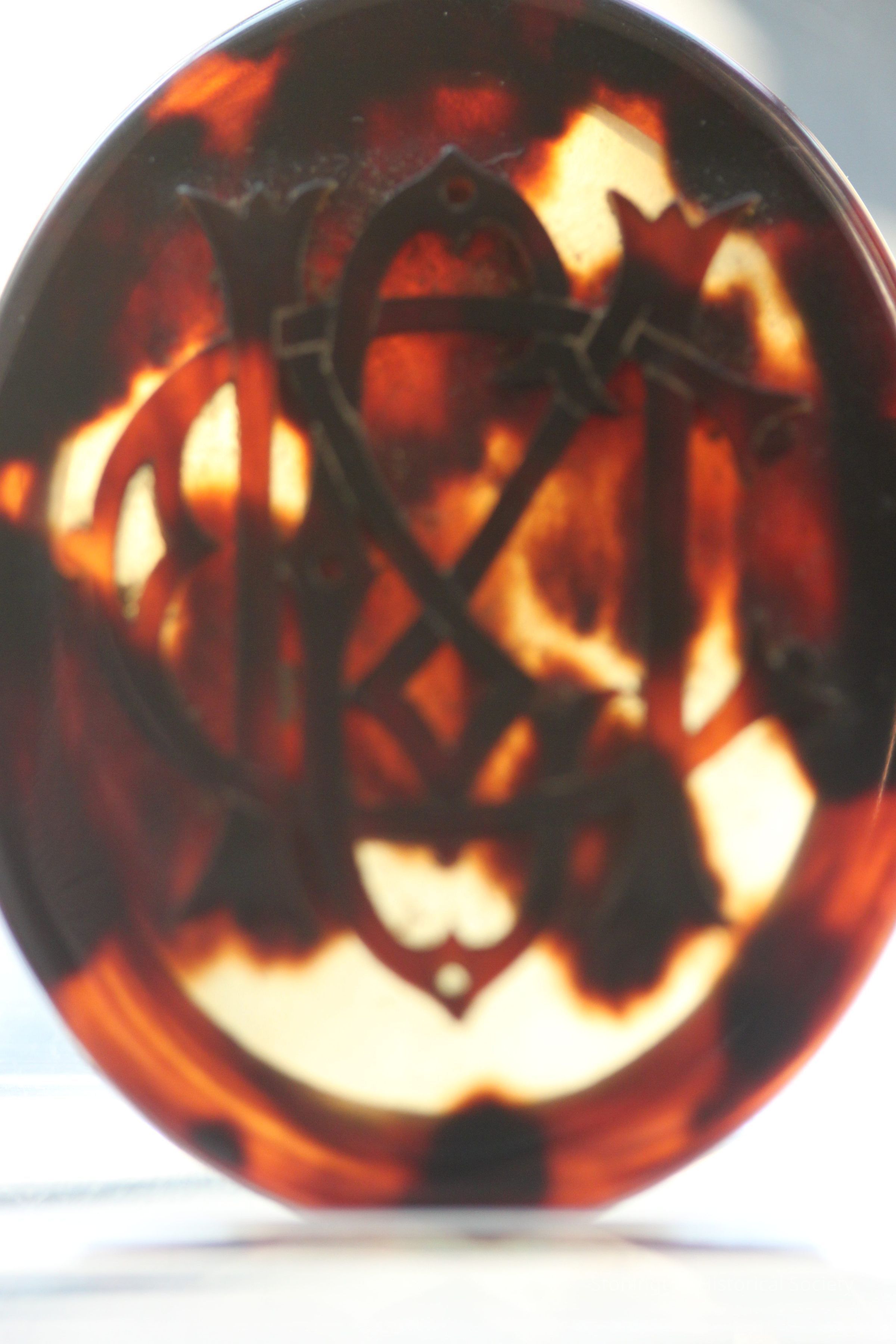 tortoise shell locket, inscribed: "MCC" (or "CCM")
