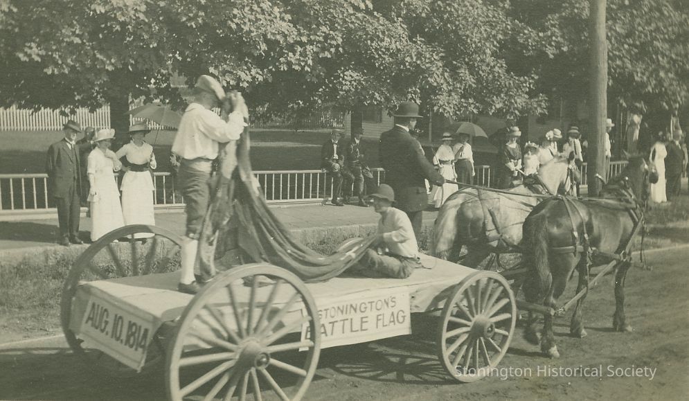 Battle of Stonington with flag on horse drawn wagon