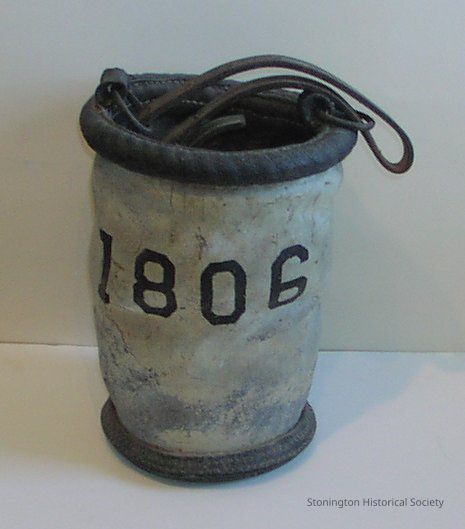 fire bucket, leather, "1806" gift of Mr Charles Main