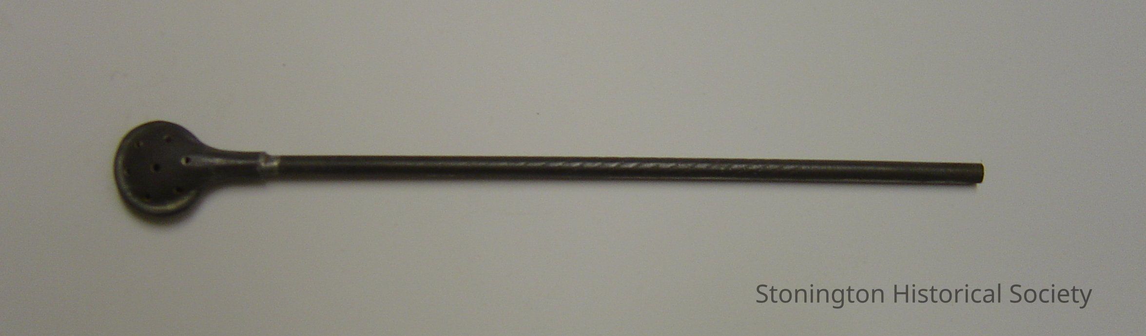 matte sipper, tin, elaborately decorated, Brazillian, brought back to Stonington by Captain Forsyth