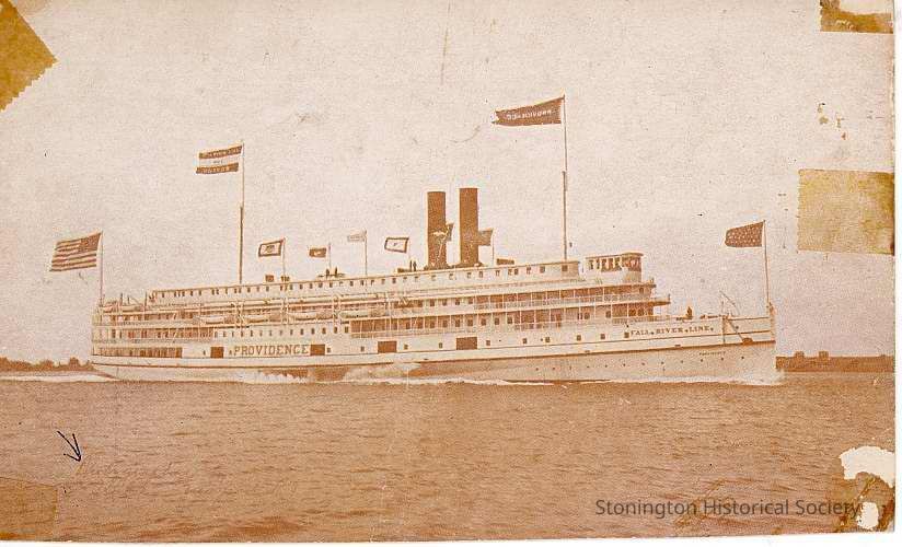 Faded postcard of the steamer "Providence" on the water. Labeled 119-2 but no slide