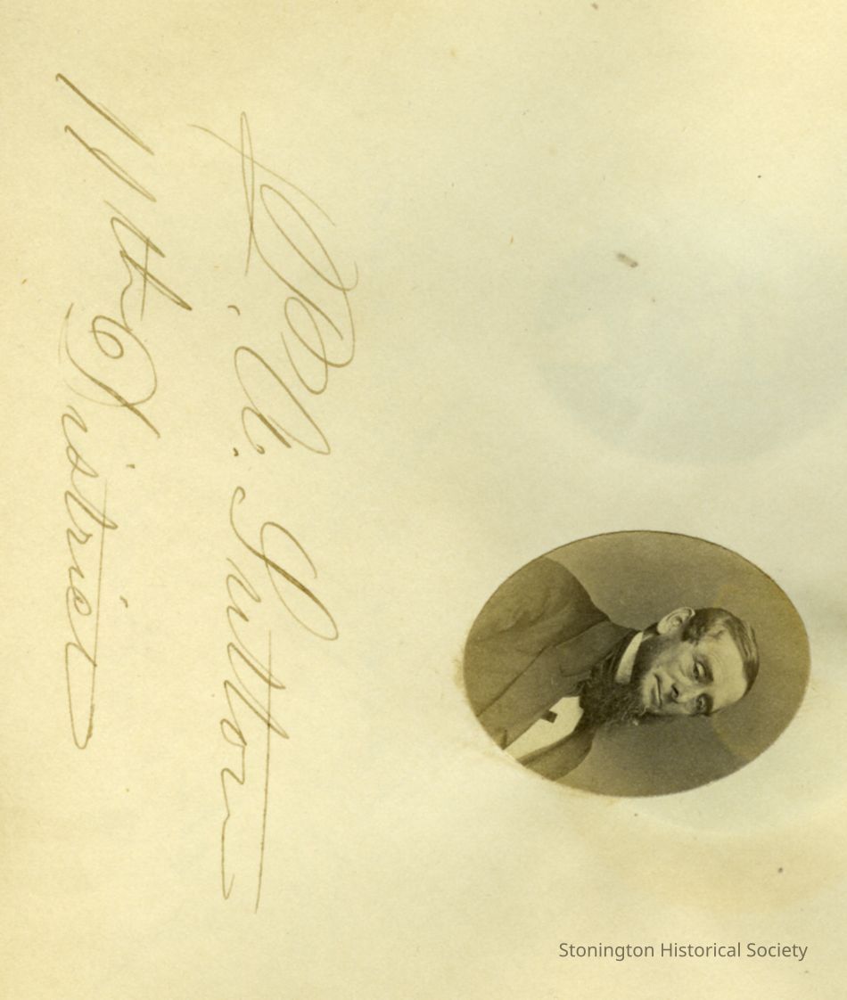 Small oval portrait of P[ierre] A. Sutton, 11th District, in "Photographs and Autographs" book