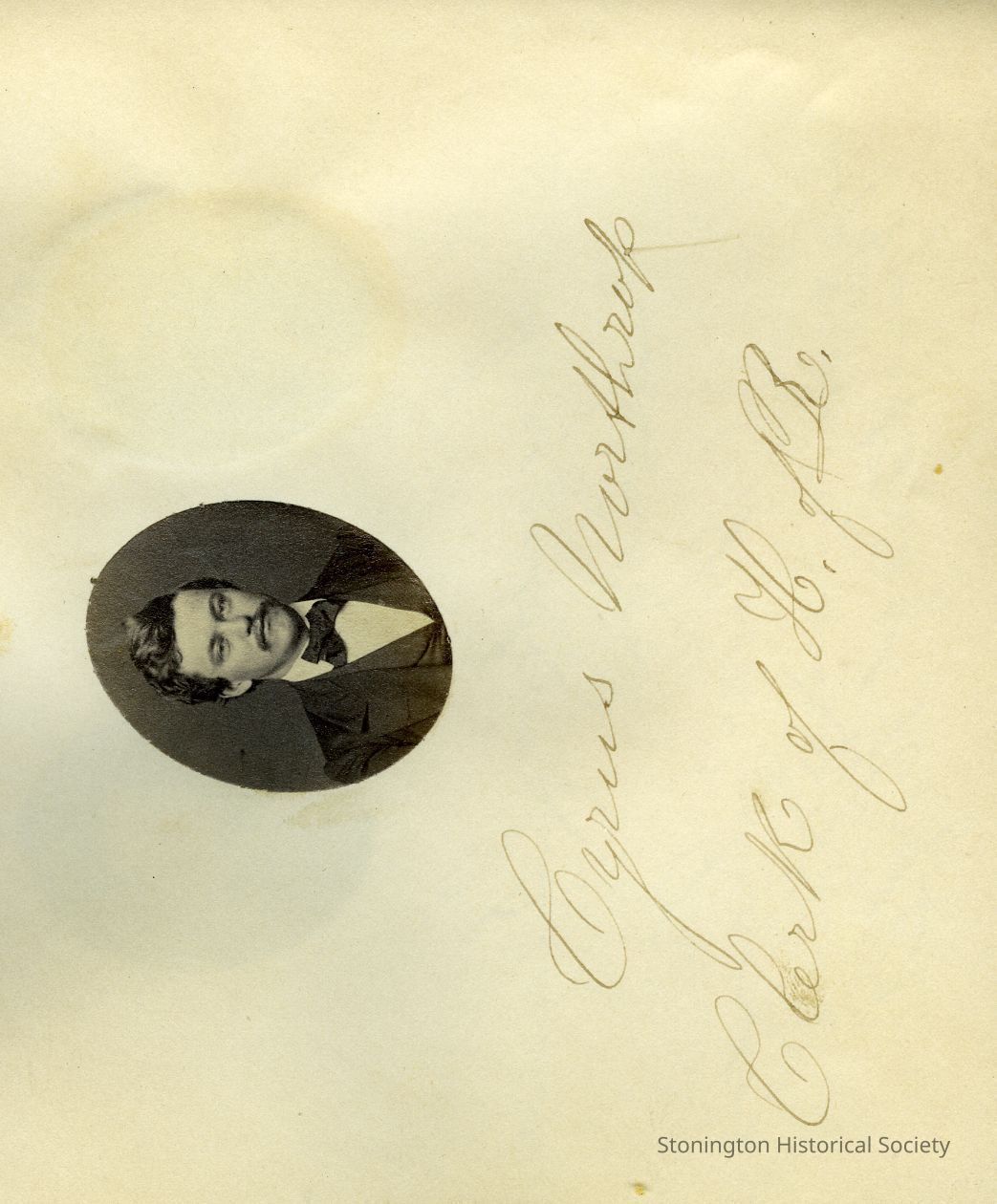 Small oval portrait of Cyrus Northrop in "Photographs and Autographs" book