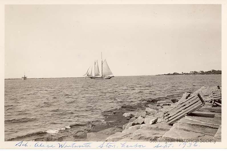 Schooner Alice Wentworth, Stonington Harbor, Sept. 1936 note on back: "Orig."