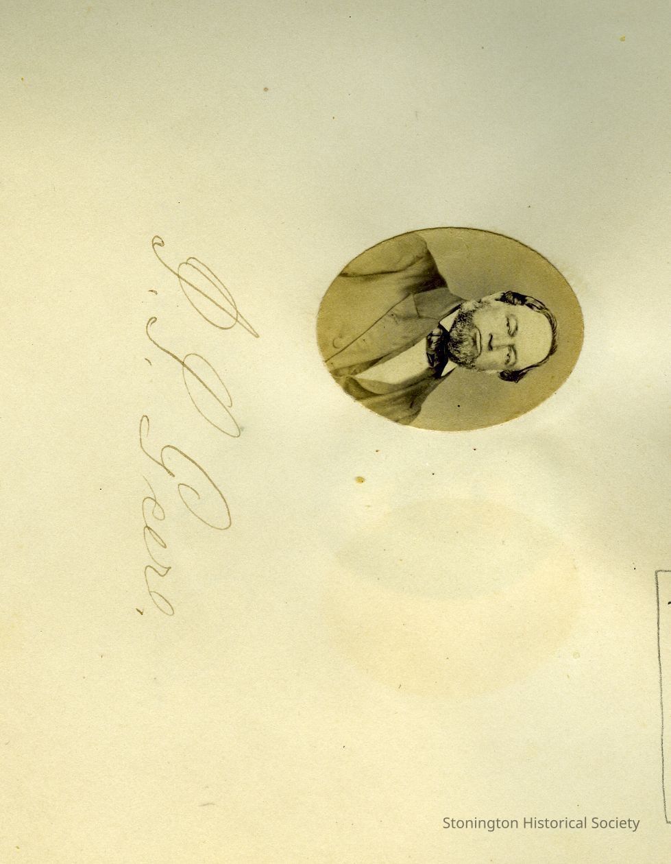 Small oval portrait of I[saac] S. Geer (?) in "Photographs and Autographs" book