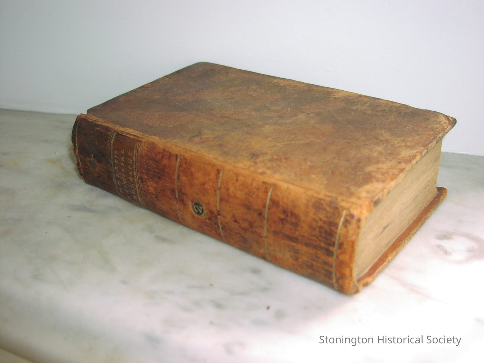 "Morse's Universal Geography: Volume II" by Jedidiah Morse, published by Thomas and Andrews, Boston, 1812. Brown book cover with gold lettering on the spine, "Morse's Universal Geography" "2"