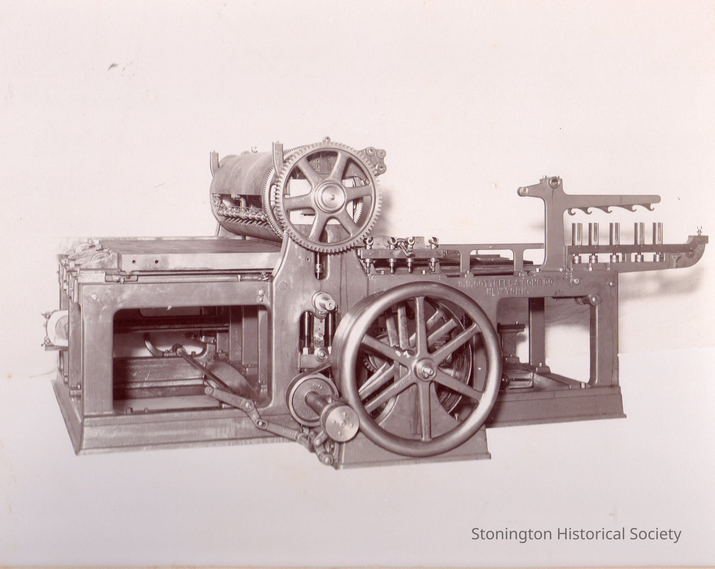 Scrapbook (21 pages with additional loose pages) filled with photographs of equipment and machinery used by C.B. Cottrell & Sons, Manufacturers of Printing Machinery, located on the Pawcatuck River.Collection
