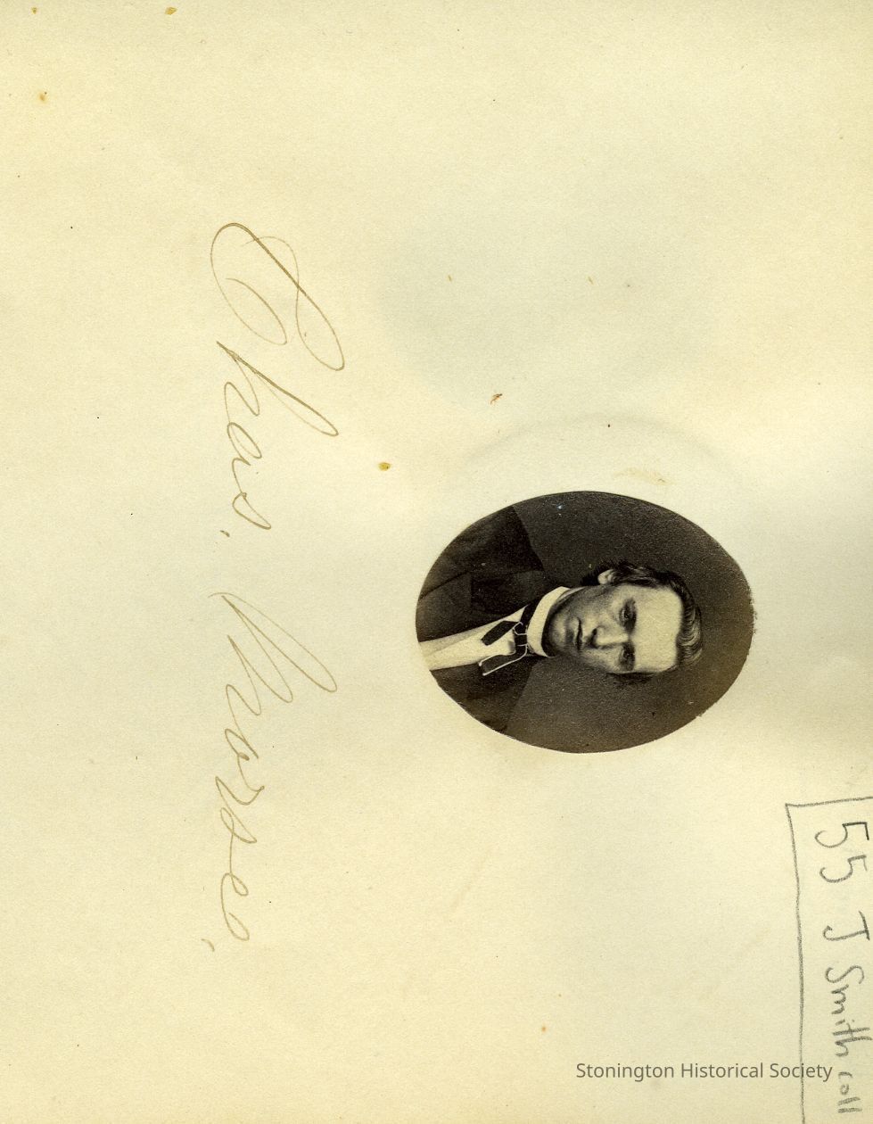 Small oval portrait of Charles Morse in "Photographs and Autographs" book