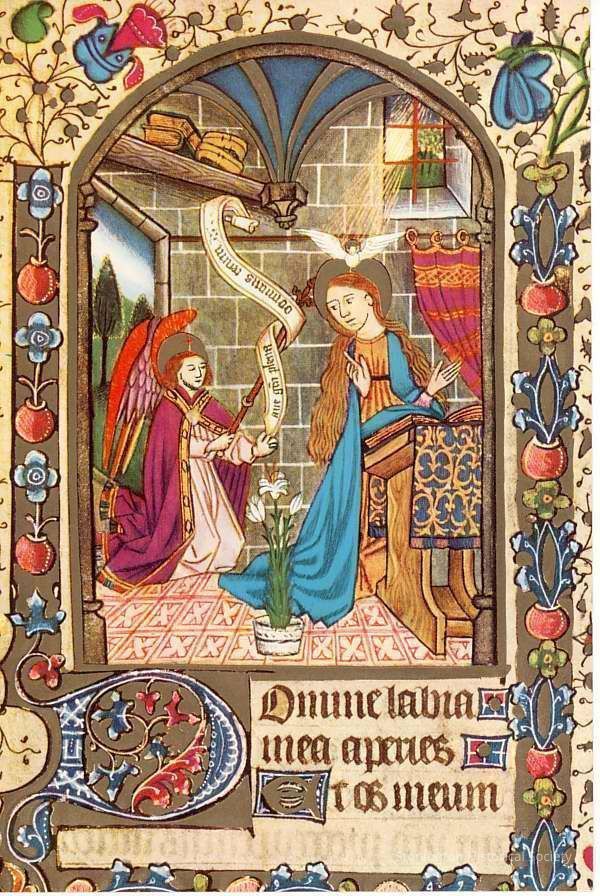 Detail of illuminated manuscript "The Annunciation" from Book of Hours, about 1430, French
