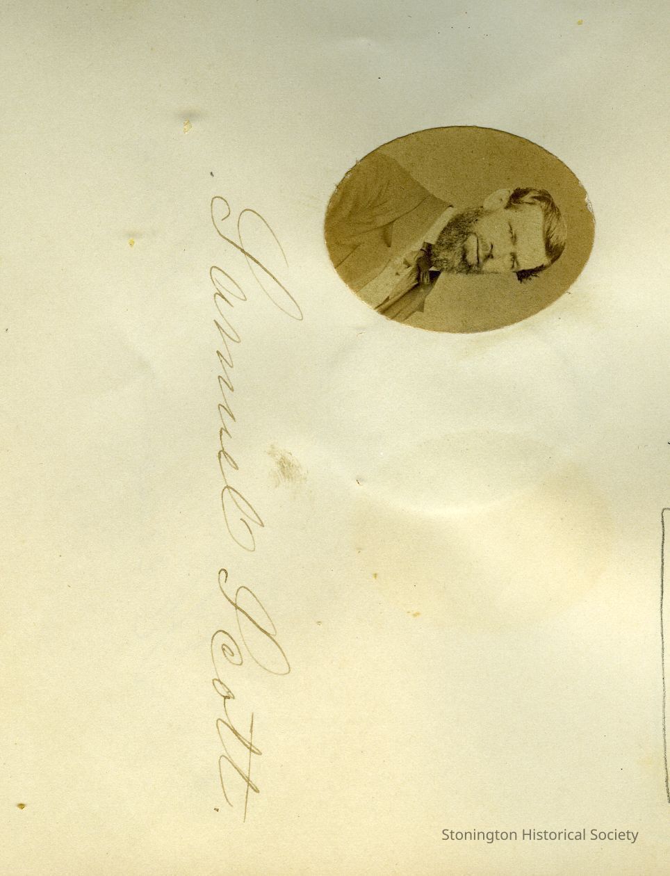 Small oval portrait of Samuel Scott in "Photographs and Autographs" book