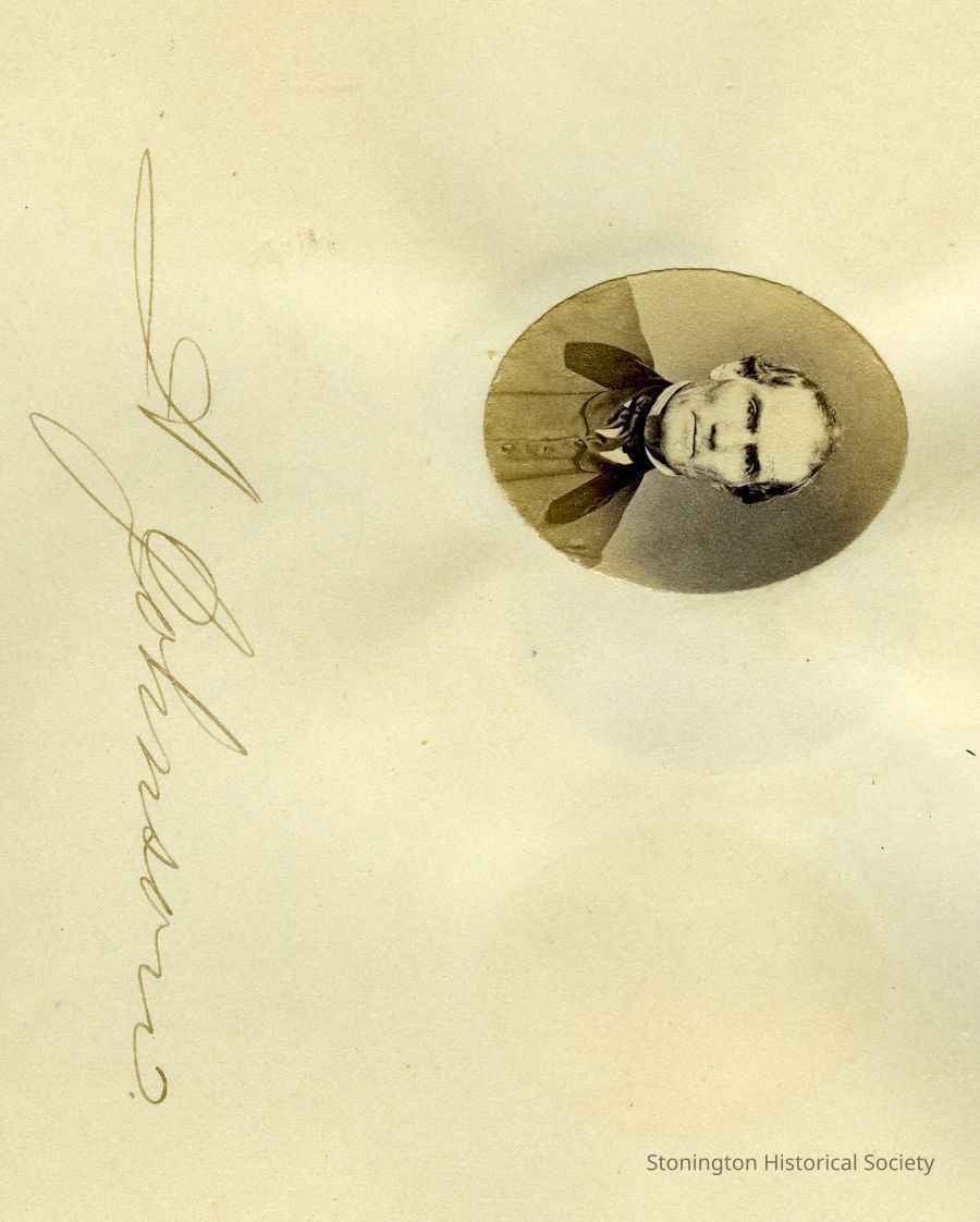 Small oval portrait of A[holiab] Johnson in "Photographs and Autographs" book