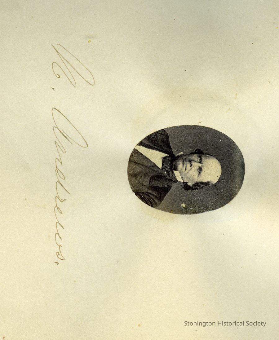 Small oval portrait of N[athan] Andrews in "Photographs and Autographs" book