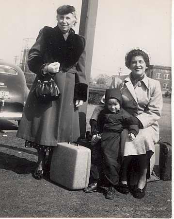Vera Tillotson, Gail Wheeler and Dorothea Gould at Westerly Railroad Station April 10, 1951 going to NY to take ship to England