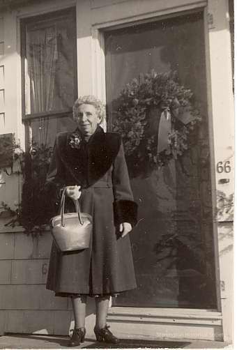 Dorothea's mother, Vera Tillotson, visiting at Lordship, Dec. 26, 1956 getting ready to go to tea at the neighbors.