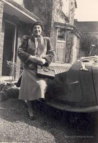 Dorothea in front of Eden Lodge in Surrey England with the MG. Note on back In section marked 1950s