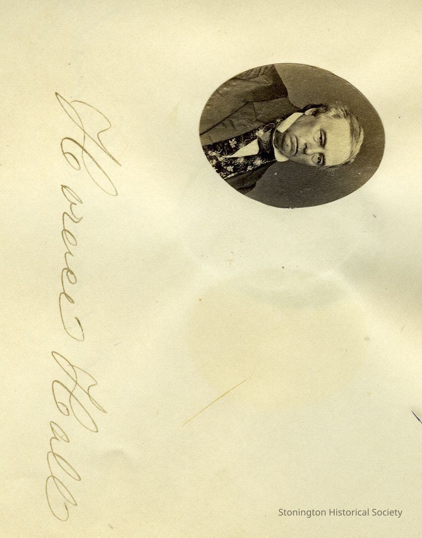 Small oval portrait of Horace Hall in "Photographs and Autographs" book