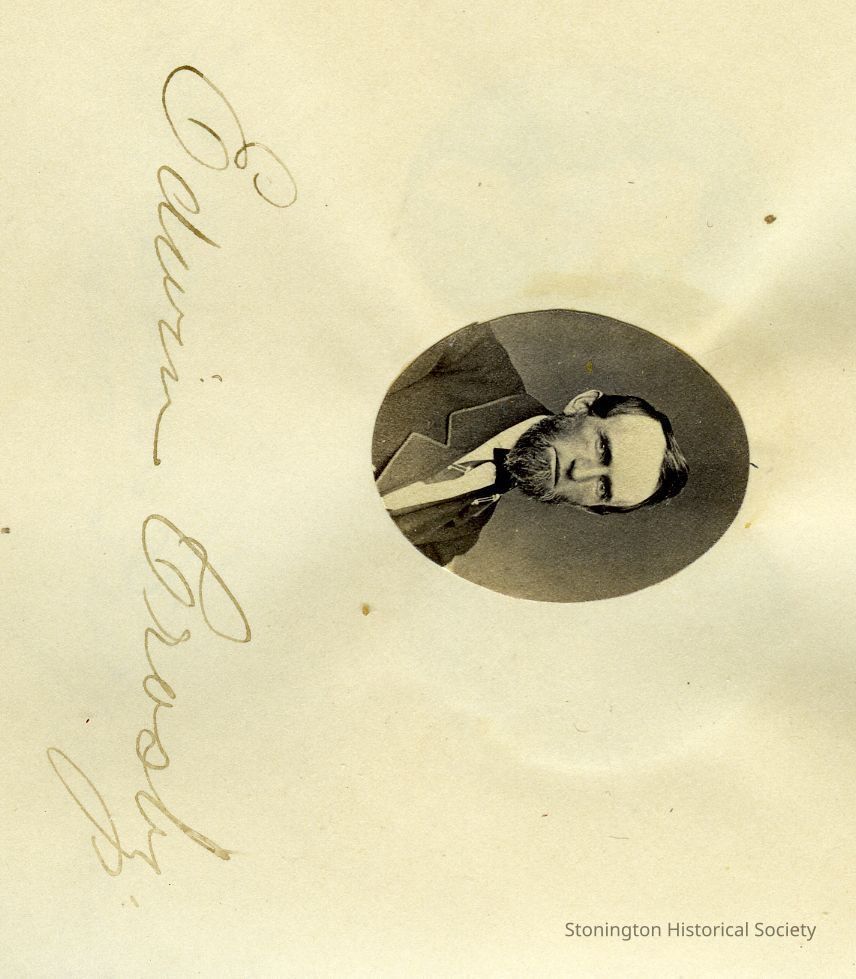 Small oval portrait of Edwin Crosby in "Photographs and Autographs" book