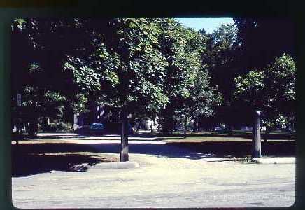 Entrance to Stonington Free Library from High Street with stone pillars on either sideCollection