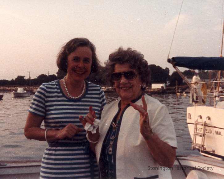 Sally Anderson and Dorothea Gould at Dodson's Marina Aug. 16, 1984. Additional note on back of photo In section marked 1980s