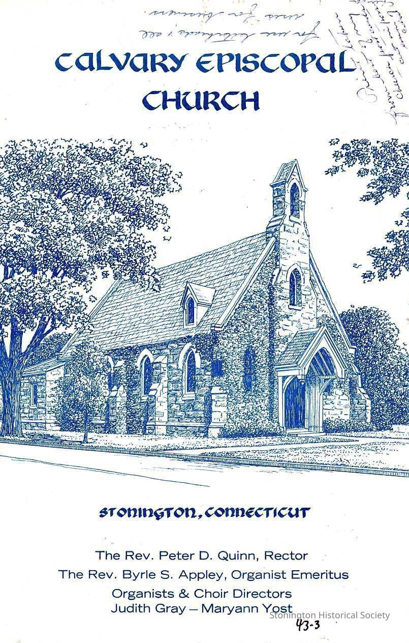 Front cover from pamphlet for Calvary Episcopal Church showing a line drawing of the church.