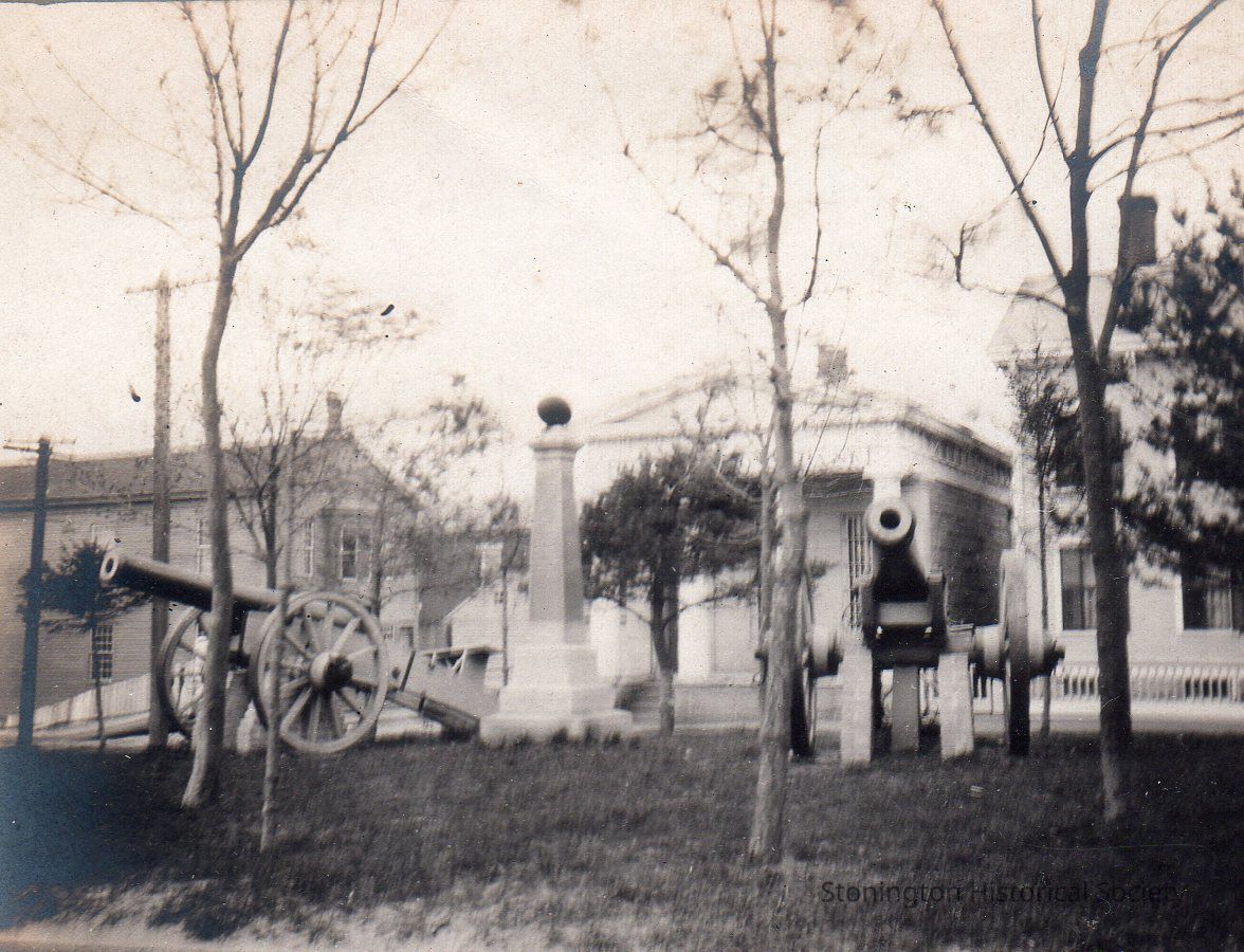 Black and white snapshot of Cannon Square, Stonington, early 1900s.