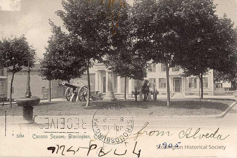 Old postcard of Cannon Square looking north with fountain front left-side. Sent in 1905