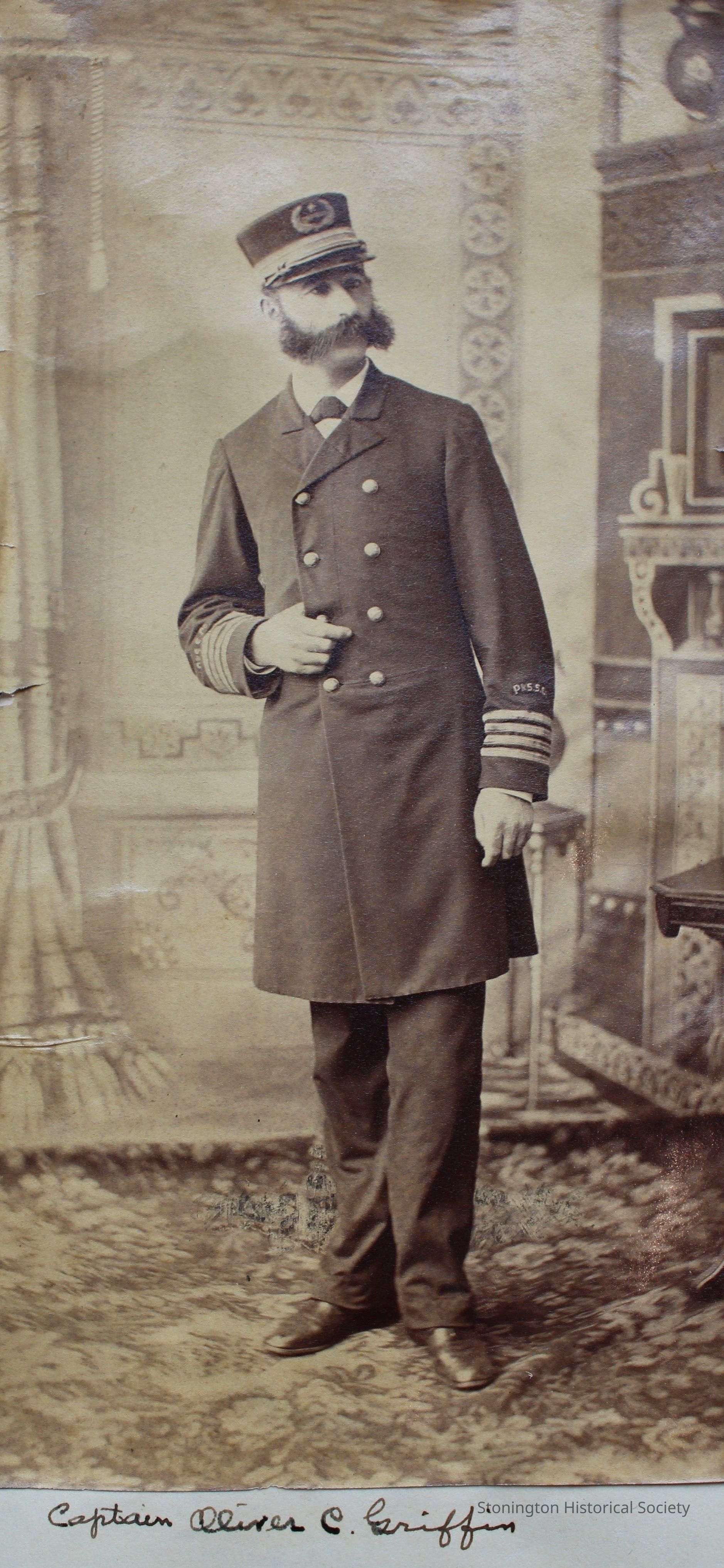 Photograph portrait of Captain Oliver C. Griffin (April 1, 1841 - July 25, 1921), from photograph album. Griffin was employed as a steamboat captain out of Stonington and is buried in the Stonington Cemetery.Collection