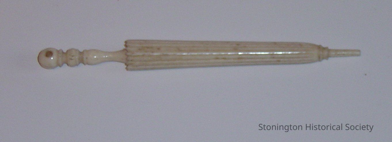 whale bone needle case, carved into the shape of a parasol(umbrella)