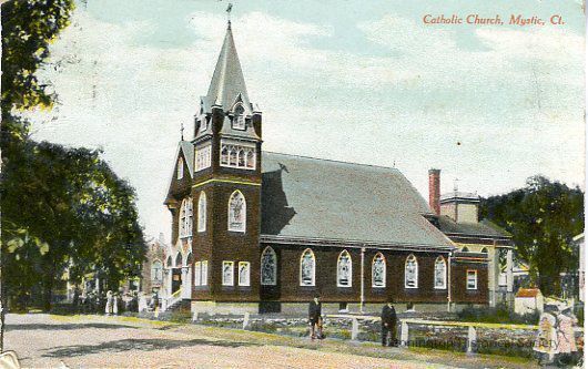 Catholic Church on East Main Street, Mysitc Color photo, 1910 Former accession no. 1999.001.0235