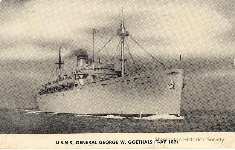U.S.N.S. General George W. Goethalis (T-AP 182) sent to Mr. Fred Gould (Dorothea) in 1954 In section marked Postcard Ephemera