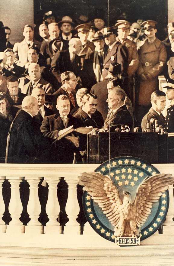Close-up of reprint of color photograph that was in the Toledo Sunday News on Feb. 2, 1941 showing Franklin D. Roosevelt being sworn in as president for the third time.